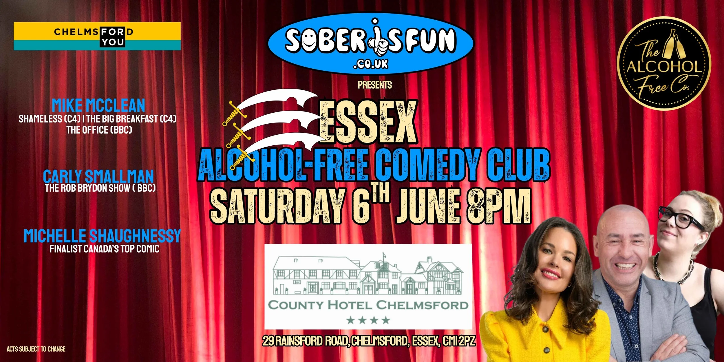 Welcome to The Essex Alcohol-Free Comedy Club at The County Hotel Chelmsford