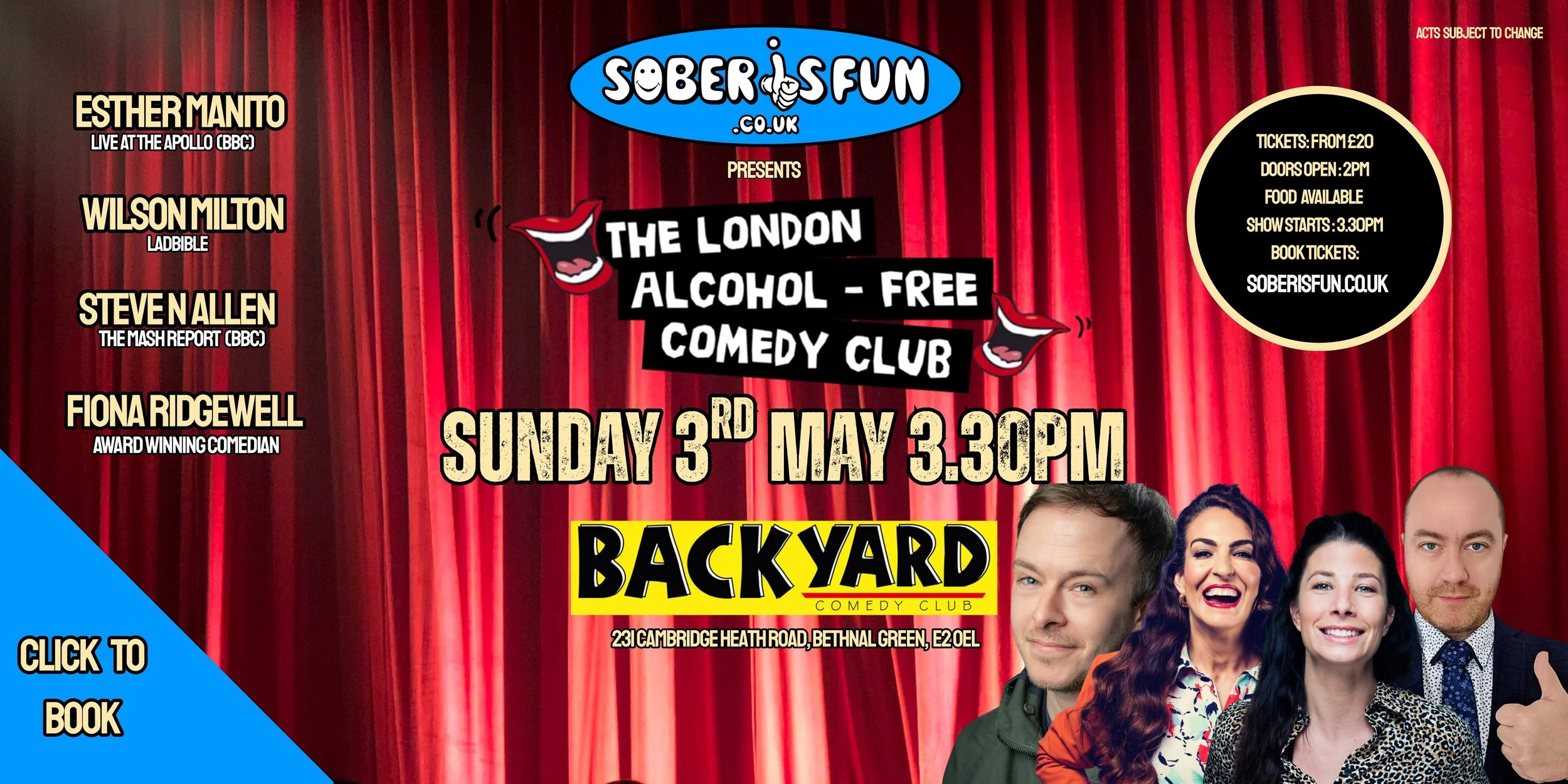 Today marks 6 weeks to go until we return to Backyard Comedy Club with The London Alcohol-Free Comedy Club on Sunday 3rd May 3.30pm.